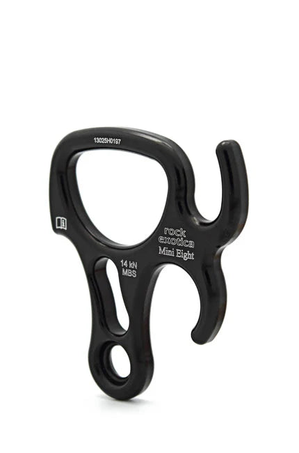 The MiniEight features side ears that let you easily adjust friction and accommodate a wide range of rope sizes. Additionally, the side ears make it easy to tie off. The attachment hole has a rubber gasket that fits tightly to your carabiner. We use 7075 aluminum, which is harder and will last longer than cheaper alloys commonly used in other figure 8’s.