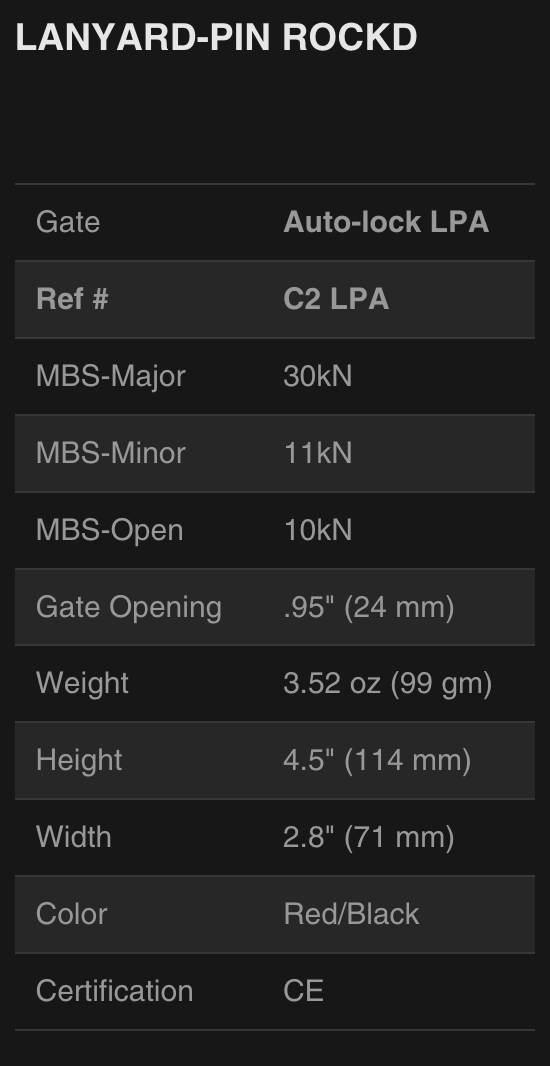 Rock Exotica rockD Lanyard Pin Carabiner - C2LPA